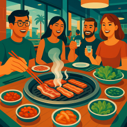 * Jetzt kann Peter das Abendessen mit seinen Freunden im 10 Butchers Korean BBQ Sunnyvale genießen!
