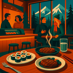 * Jetzt kann Peter das Abendessen mit seinen Freunden im Akira Back Big Sky genießen!