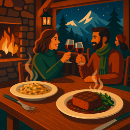 Wonderful place for a great dinner! Rode up the mountain in a sled pulled by a snowcat! Perfect drinks, fresh bolognese pasta, bread pudding and cappuccino served to us at the bar by the delightful Amanda! What a great experience!