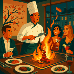* Jetzt kann Peter das Abendessen mit seinen Freunden im Benihana Chelsea London genießen!