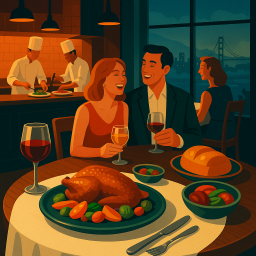 * Jetzt kann Peter das Abendessen mit seinen Freunden im Birdsong San Francisco genießen!