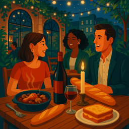 * Jetzt kann Peter das Abendessen mit seinen Freunden im Bistro Campagne Chicago genießen!
