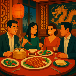 * Jetzt kann Peter das Abendessen mit seinen Freunden im Bistro Na's Temple City genießen!