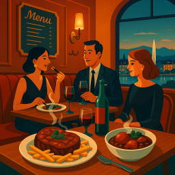 Nehmen wir an, Peter hat einen großartigen Morgen und beschließt, seine drei Freunde am selben Tag um 18 Uhr ins Bistrot du Bœuf Rouge Genève einzuladen.