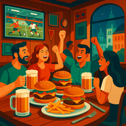 Nehmen wir an, Peter hat einen großartigen Morgen und beschließt, seine drei Freunde am selben Tag um 18 Uhr ins Champions Sports Bar & Restaurant Wien einzuladen.