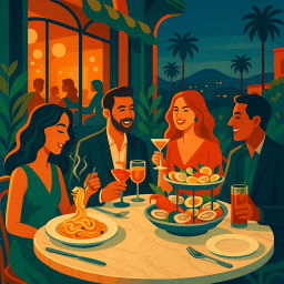 * Jetzt kann Peter das Abendessen mit seinen Freunden im Chez Mia West Hollywood genießen!