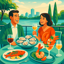 Beautiful dining overlooking the lake! Shrimp appetizer was so amazing! If you love shrimp, you have to try it!! Yummy and WOW at the same time! Also, had sea bass and it was perfect! So glad we have this restaurant !!!!