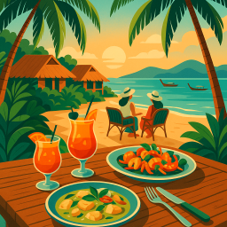 * Jetzt kann Peter das Abendessen mit seinen Freunden im Coco Palm Beach Resort, Ko Samui ตำบล แม่น้ำ genießen!