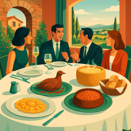 Nehmen wir an, Peter hat einen großartigen Morgen und beschließt, seine drei Freunde am selben Tag um 18 Uhr ins Dal Pescatore Santini Runate einzuladen.