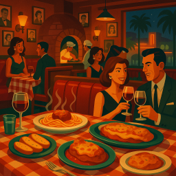 It reminds me of old Hollywood. The waiters were like built in comedians which made things fun. He had us laughing a bunch and engaging with the table across from us. I like the old Hollywood charm this place has. It can get crowded fast though