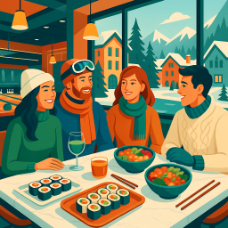 * Jetzt kann Peter das Abendessen mit seinen Freunden im DECA+BOL Vail genießen!