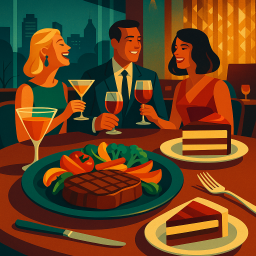 * Jetzt kann Peter das Abendessen mit seinen Freunden im Diana American Grill Houston genießen!