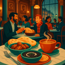* Jetzt kann Peter das Abendessen mit seinen Freunden im Dishoom Glasgow genießen!