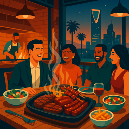 * Jetzt kann Peter das Abendessen mit seinen Freunden im FireGrill Riyadh genießen!