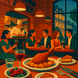 * Jetzt kann Peter das Abendessen mit seinen Freunden im Frenchie Paris genießen!