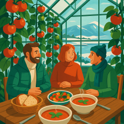 Nehmen wir an, Peter hat einen großartigen Morgen und beschließt, seine drei Freunde am selben Tag um 18 Uhr ins Friðheimar Reykholt einzuladen.