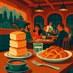 * Jetzt kann Peter das Abendessen mit seinen Freunden im Giant Chicago genießen!