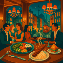 * Jetzt kann Peter das Abendessen mit seinen Freunden im Golden Street Hotel genießen!