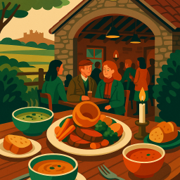 * Jetzt kann Peter das Abendessen mit seinen Freunden im Grey Barns Alnwick genießen!