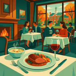 * Jetzt kann Peter das Abendessen mit seinen Freunden im Hanover Inn Dartmouth genießen!