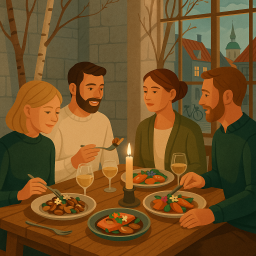Nehmen wir an, Peter hat einen großartigen Morgen und beschließt, seine drei Freunde am selben Tag um 18 Uhr ins Høst København einzuladen.