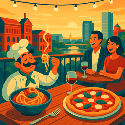 I love the views outside on the rooftop balcony on a beautiful evening. Their food is overly delicious with their fresh pasta. My absolute favorite is their focaccia appetizer with cheese. Servers. Always know how to discuss different options on the