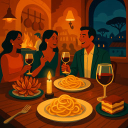 * Jetzt kann Peter das Abendessen mit seinen Freunden im Incantum Roma genießen!