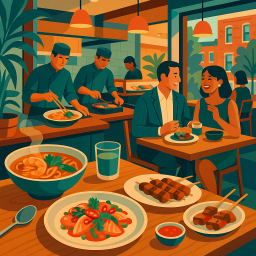 * Jetzt kann Peter das Abendessen mit seinen Freunden im iNDO St. Louis genießen!