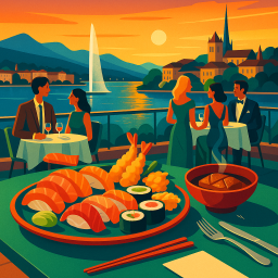 * Jetzt kann Peter das Abendessen mit seinen Freunden im IZUMI Genève genießen!