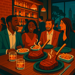 * Jetzt kann Peter das Abendessen mit seinen Freunden im J Carver Austin genießen!