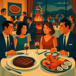 * Jetzt kann Peter das Abendessen mit seinen Freunden im J. Gilbert's Wood-Fired Steaks & Seafood Glastonbury East Hartford genießen!
