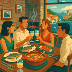 * Jetzt kann Peter das Abendessen mit seinen Freunden im Kaia Kaipe Getaria genießen!