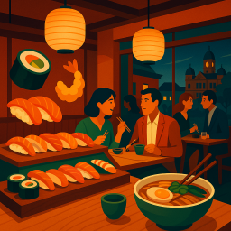 * Jetzt kann Peter das Abendessen mit seinen Freunden im Keiichi Denton genießen!