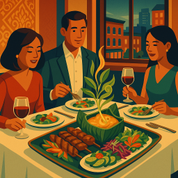 * Jetzt kann Peter das Abendessen mit seinen Freunden im Khmai Cambodian Fine Dining Chicago genießen!