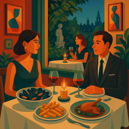* Jetzt kann Peter das Abendessen mit seinen Freunden im La Colombe D'or Forest genießen!