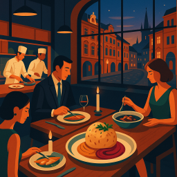 * Jetzt kann Peter das Abendessen mit seinen Freunden im La Degustation genießen!