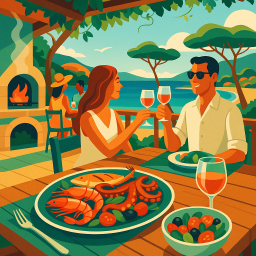 * Jetzt kann Peter das Abendessen mit seinen Freunden im La sauvageonne Ramatuelle genießen!