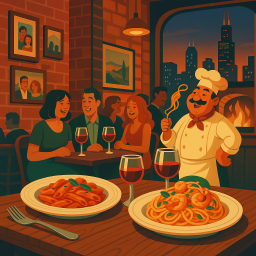 * Jetzt kann Peter das Abendessen mit seinen Freunden im La Scarola Chicago genießen!