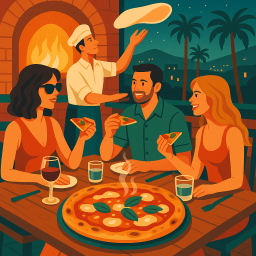 * Jetzt kann Peter das Abendessen mit seinen Freunden im L’Antica Pizzeria da Michele Los Angeles genießen!