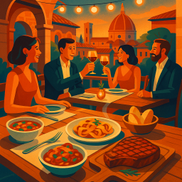 * Jetzt kann Peter das Abendessen mit seinen Freunden im Locale Firenze genießen!