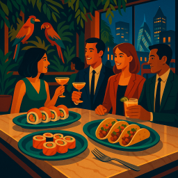 * Jetzt kann Peter das Abendessen mit seinen Freunden im Los Mochis London City genießen!