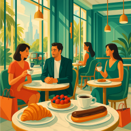 * Jetzt kann Peter das Abendessen mit seinen Freunden im LV The Place Bangkok - Le Café Louis Vuitton เขตปทุมวัน genießen!