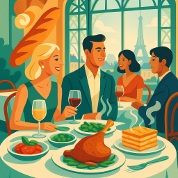 * Jetzt kann Peter das Abendessen mit seinen Freunden im Madame Brasserie - Tour Eiffel Paris genießen!