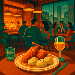 * Jetzt kann Peter das Abendessen mit seinen Freunden im Nancy's Hustle Houston genießen!