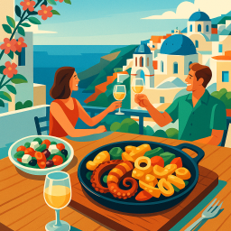 * ElaborateHouse74 nutzt nun seine Kontakte im No Name Grill Restaurant Santorini Thira, um den Tisch zu sichern.
