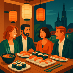 * Jetzt kann Peter das Abendessen mit seinen Freunden im Osaka Sushi Antwerpen genießen!