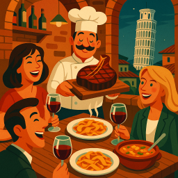 * Jetzt kann Peter das Abendessen mit seinen Freunden im Osteria dei Cavalieri Pisa genießen!