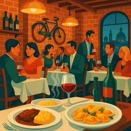 * Jetzt kann Peter das Abendessen mit seinen Freunden im Osteria dell'Oca Mantova genießen!