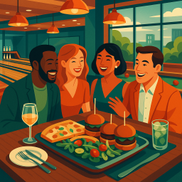 * Jetzt kann Peter das Abendessen mit seinen Freunden im Pinstripes Beachwood genießen!