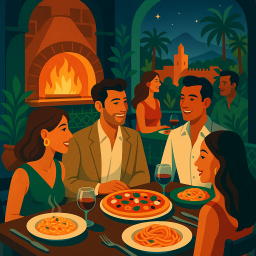 * Jetzt kann Peter das Abendessen mit seinen Freunden im Portofino Restaurant Marrakech genießen!